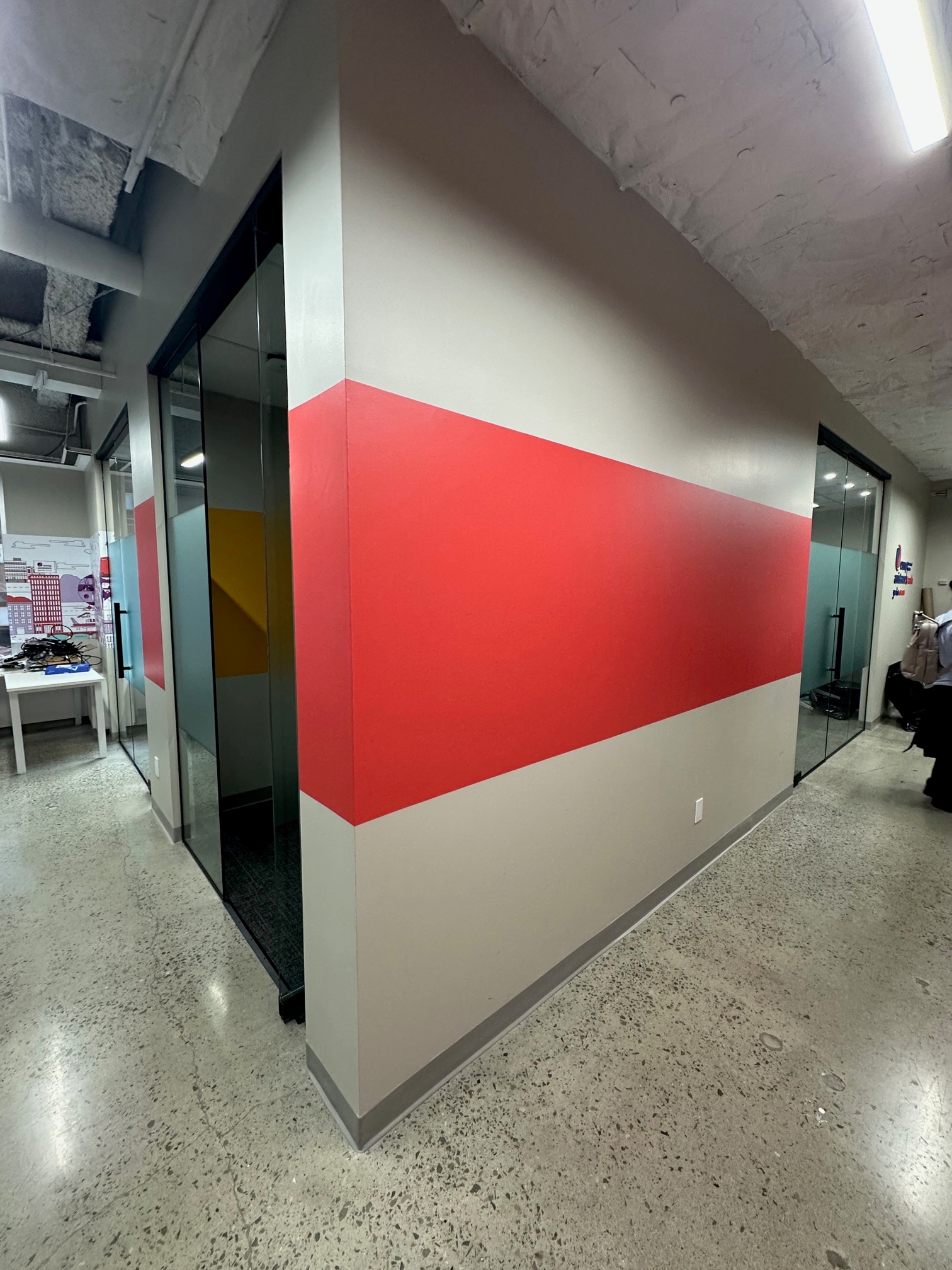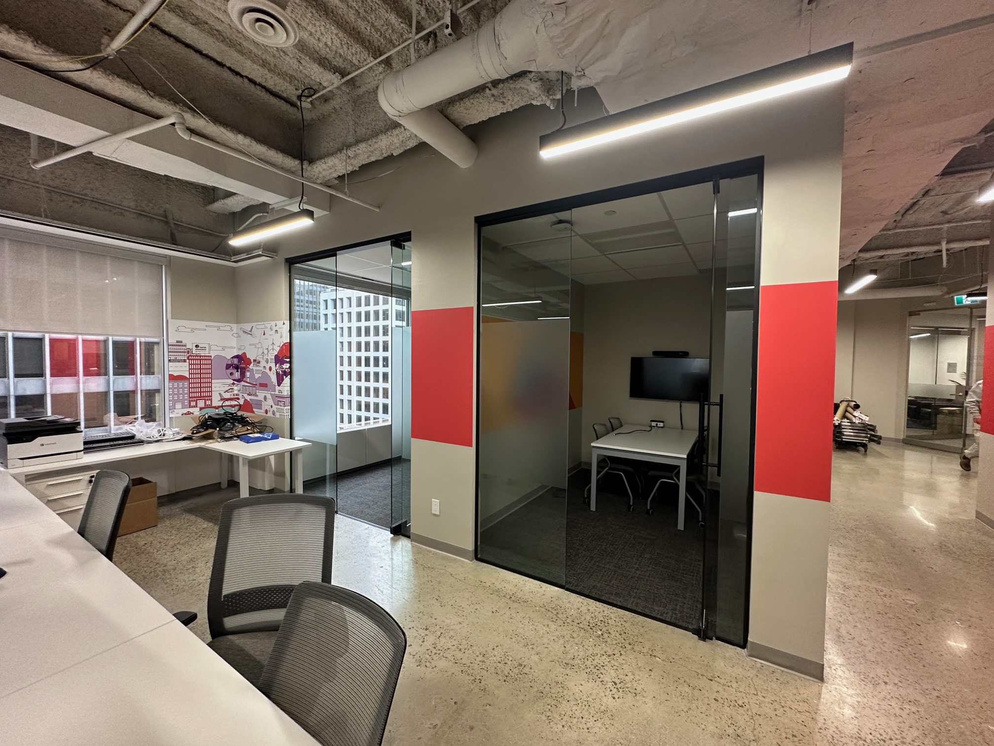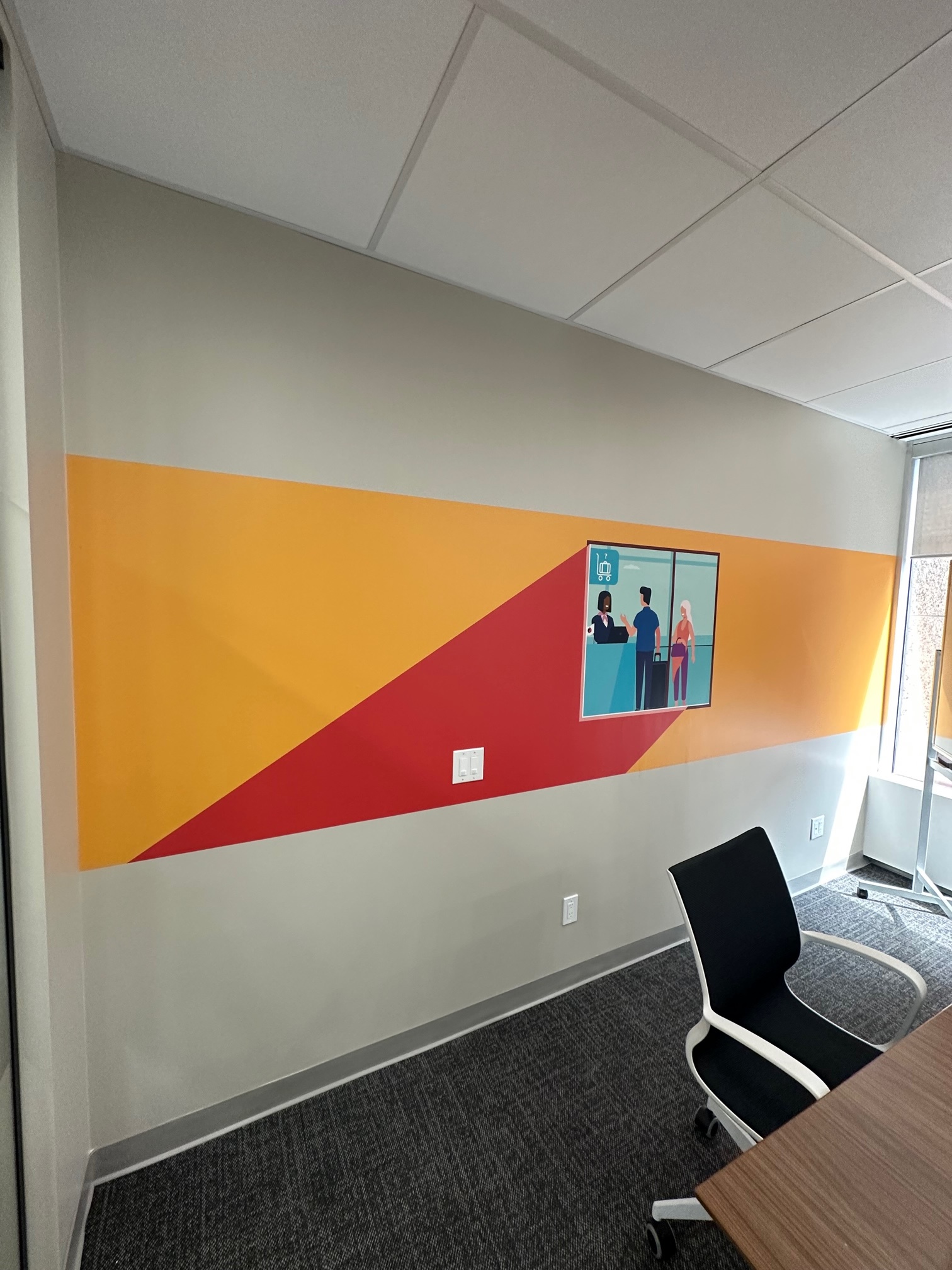 The custom illustrations, although provided, were extended and adapted to fit the specification of the new office space. The designs are vinyls and were printed and installed.