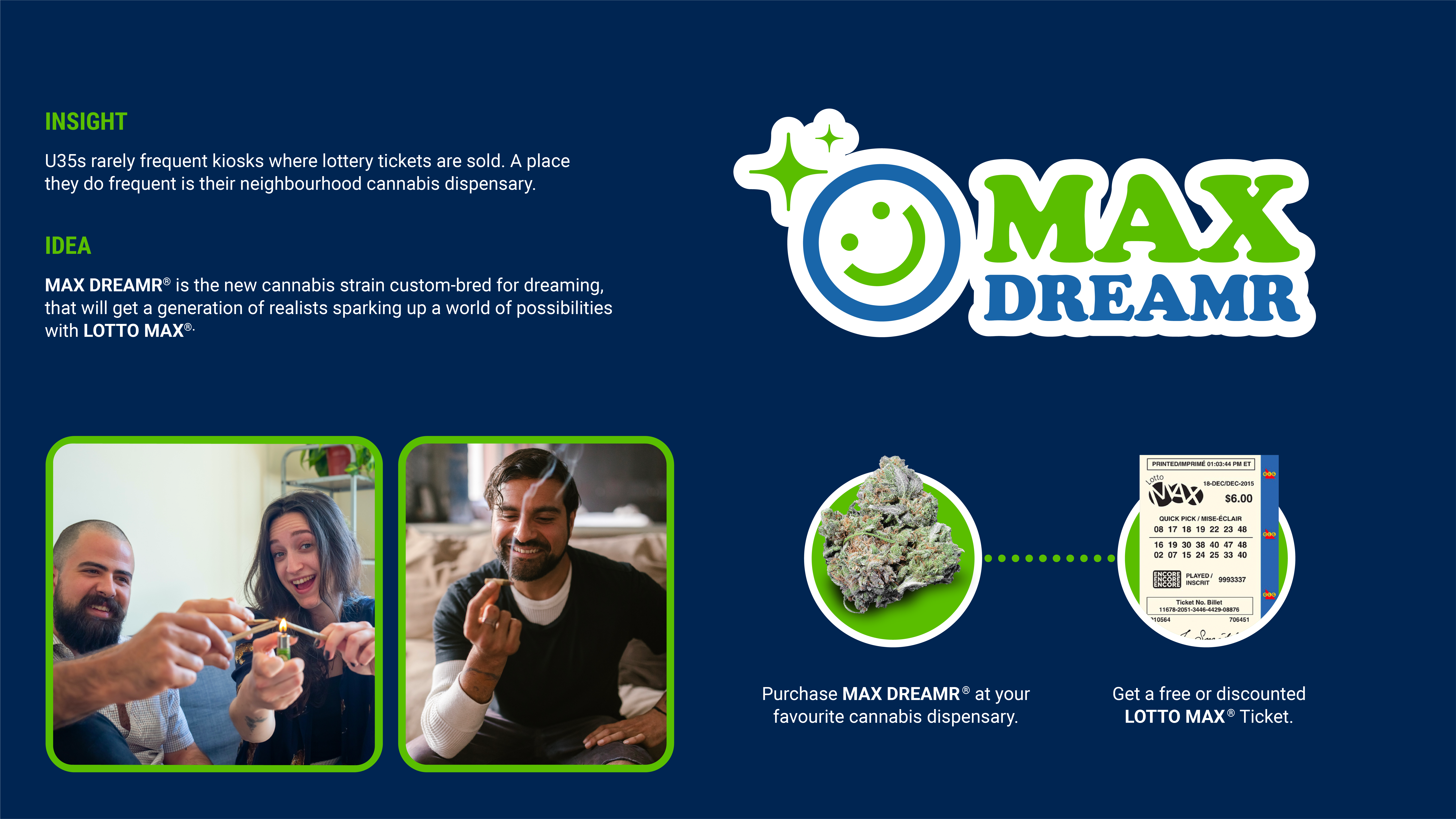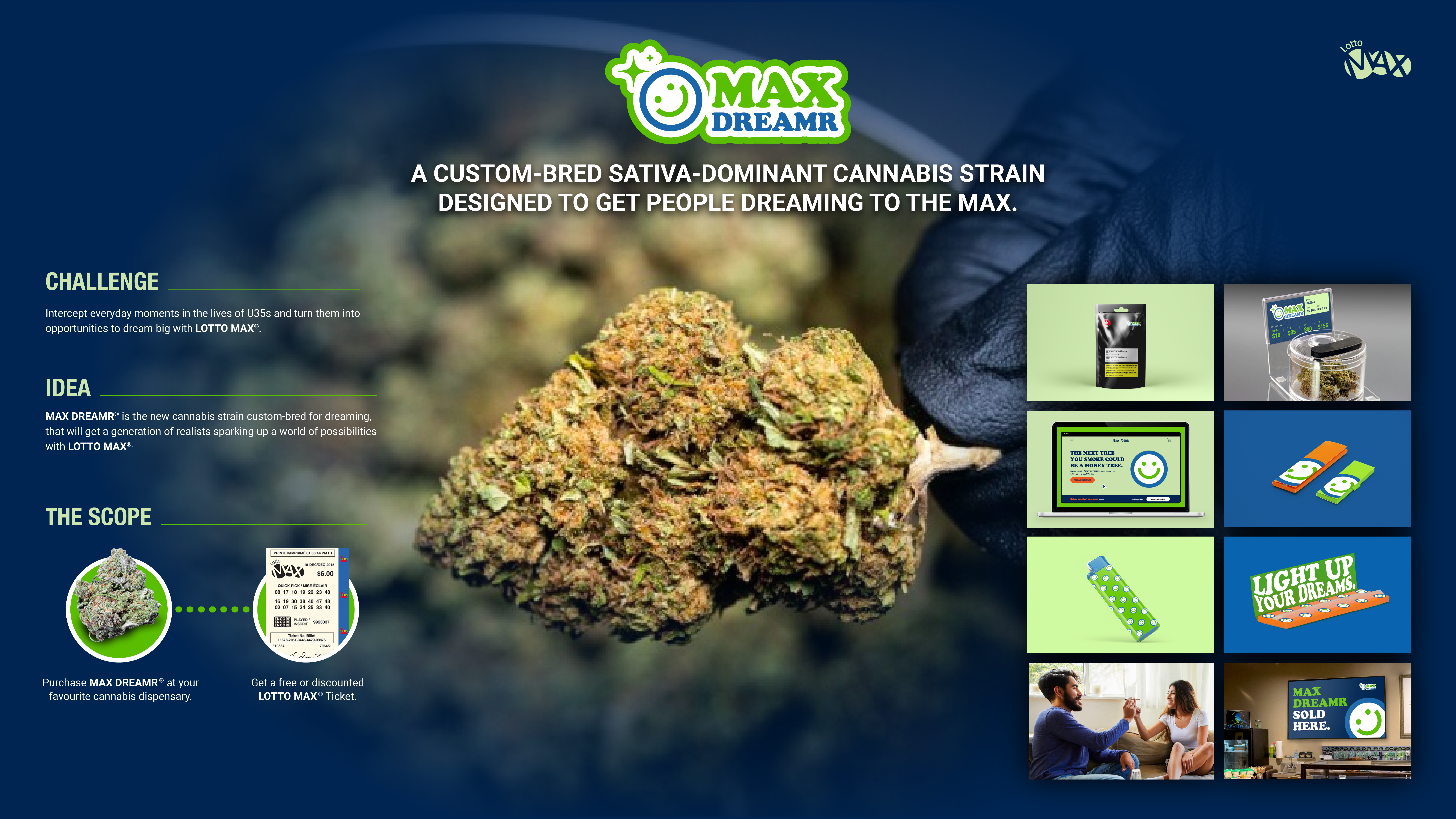 What better way to get young people taking a shot at turning their dreams into reality than by making the perfect cannabis strain. Max Dreamr is Lotto Maxs' call to all dreamers out there to light a joint, puff to the wind and dream to the Max.
